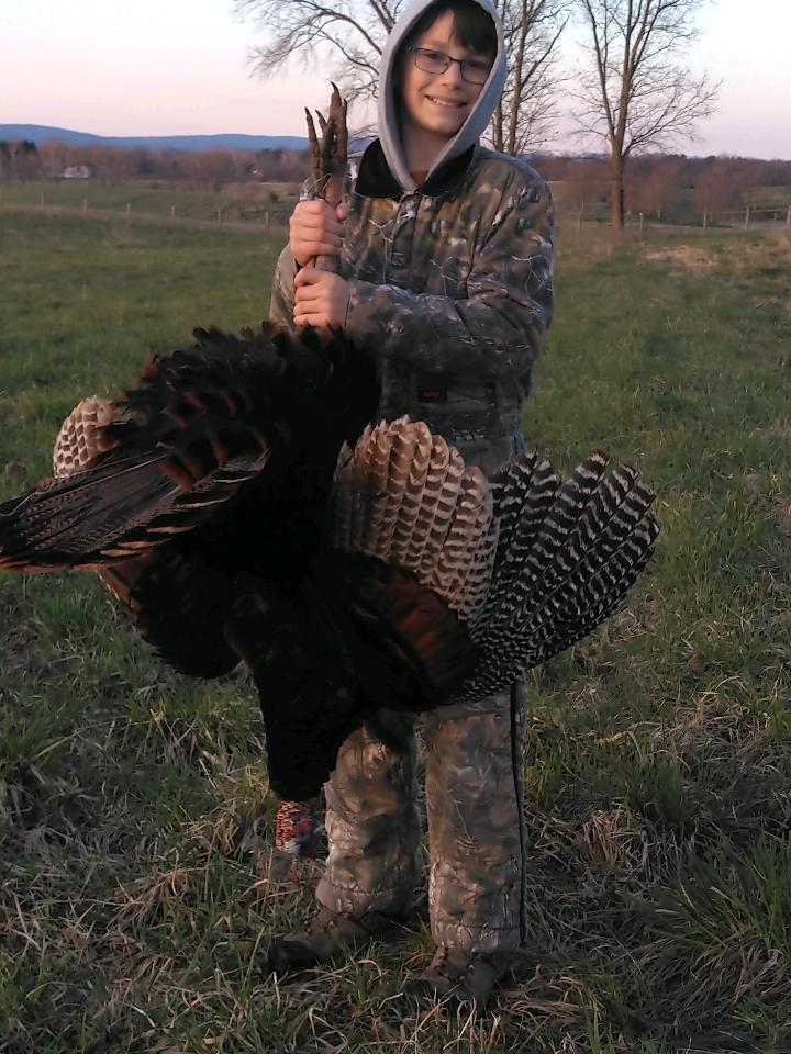 الصياد المبتدئ ناثان وولفورد من بيج روك بولاية فيرجينيا 41- رجل يبلغ من العمر من ذوي الاحتياجات الخاصة. كان ناثان يقرأ عن الصيد ويشاهد برامج الصيد لسنوات عديدة. في الخريف الماضي طلب من عضو مجلس إدارة DWR ليون بويد إذا كان بإمكانه الذهاب لصيد الغزلان. بعد الحصول على موافقة والدة ناثان، بدأ ليون على الفور العمل على تحقيق هذا الهدف. تضمنت الشهور الستة الماضية الكثير من "البدايات" لنايثان. أطلق ناثان النار من مسدس لأول مرة، وقاد مركبة لأول مرة، وصعد إلى منصة الشجرة لأول مرة. ونعم، أطلق ناثان النار على أول غزال له في الخريف الماضي، وهو غزال ذو سنبلة. أهداه معلمي الصيد الخاصين بناثان، جاستن ولوغان بويد، بدلة مموهة مغطاة بأوراق الشجر في عيد ميلاده قبل بضعة أسابيع. في نهاية الأسبوع الماضي اصطحبوه في عطلة نهاية الأسبوع الماضي لصيد طائر الغزال الربيعي. اختبأ الصيادون في ستارة أرضية متنقلة، وانتظروا اقتراب طائر الغوبلر من أفخاخهم ومناداة الطائر. استجابت عدة طيور غوبلر للنداء، ونظرًا لأن طيور الغوبلر ظلت قريبة جدًا من بعضها البعض، فقد تطلب الأمر جهدًا كبيرًا لانتظار فرصة لإمكانية إطلاق النار على طائر غوبلر واحد. ولحسن الحظ، أتيحت فرصة سانحة وتمكن ناثان من اصطياد أول ديك رومي له، وهو ديك رومي ربيعي جميل.