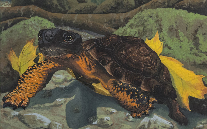 فازت لوحة ميراندا ماكليف المصنوعة من الأكريليك والتي تصور سلحفاة خشبية في بيئتها المائية بمسابقة Restore the Wild Artwork الافتتاحية. اقرأ المزيد...