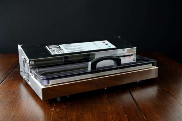 سيضمن لكِ جهاز تفريغ الهواء الحفاظ على تلك السعرات الحرارية التي اكتسبتها بشق الأنفس في أفضل حالة في الثلاجة. لقد استخدمت عددًا من آلات تفريغ السدادات بدءًا من الرخيصة جدًا وحتى التجارية منها، وأنصحك بشراء واحدة شديدة التحمل إذا كنت تخطط لتجهيز أكثر من بضعة حيوانات في السنة. تميل الأنواع الأرخص ثمناً إلى الانكسار بعد عدة مواسم من الاستخدام الكثيف. إذا كانت لديك المساحة الكافية لذلك، فإن المكنسة الكهربائية ذات الحجرة المفرغة من الهواء تقوم بأفضل عمل، كما أن الأكياس أرخص ثمناً. إذا كانت لديك مساحة محدودة على المنضدة كما هو الحال بالنسبة لي، فقد يكون مانع تسرب الغازات أكثر من اللازم. سيساعدك جهاز تفريغ الهواء من ويستون برو أو ما شابهه المزود بمحرك قوي وقضيب ختم كبير على ضمان بقاء البروتينات البرية في أفضل شكل ممكن أثناء تخزينها في التخزين البارد.