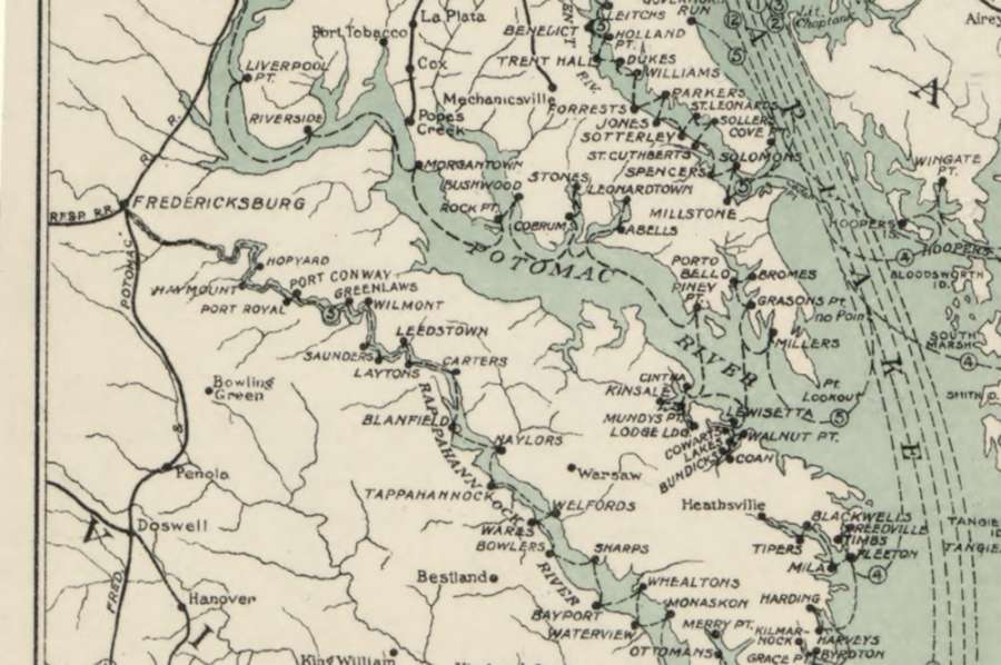 يبدو نهر راباهانوك بين بورت رويال وفريدريكسبيرغ هادئاً جداً في معظم الأيام، لكنه لم يكن كذلك دائماً. على مدار 90 سنة الماضية، استحوذت الطرق البرية على جميع حركة المرور التجارية والشخصية في المنطقة تقريبًا، ولكن قبل عام 1930ق، كانت هذه المياه مشغولة لمدة ألف عام على الأقل.