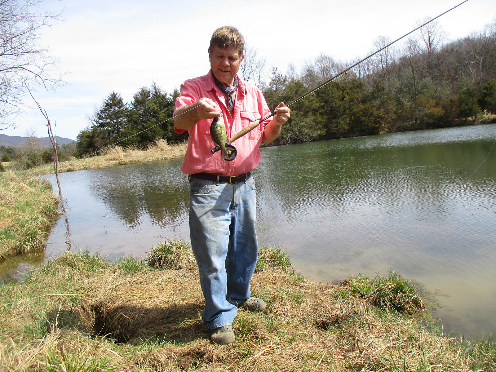 كان منظرًا رائعًا، وسرعان ما كان الصيادان يرميان السمك بشكل خاطئ، ثم يسقطان العناكب المطاطية الإسفنجية بالقرب من كتلة الأسماك. وفي ثوانٍ معدودة تمت مكافأتهم بصوت الخياشيم الزرقاء الجميل وهي تمتص بلطف حشرات المياه العلوية. ثنيت الصنارات بإحكام، وبعد دقائق كان كلاهما يرفعان سمك السلور السمين الملون. وقبل مغادرتهم الخليج الصغير، تم اصطياد أكثر من 30 سمكة بلو جيلز الوقحة، مع الاحتفاظ بعشرات منها في الثلج لتناولها لاحقًا، بينما تم إطلاق سراح البقية دون أن تصاب بأذى.