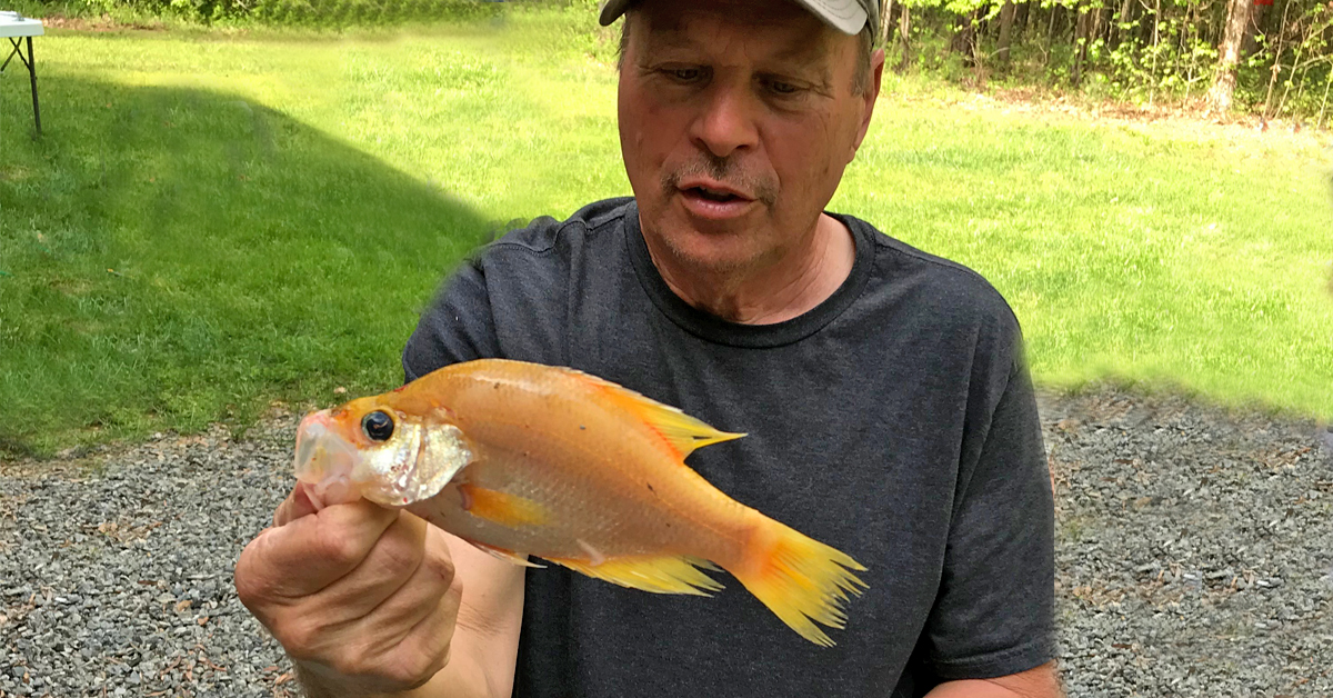 اصطاد صياد محظوظ صيدًا غير عادي في بحيرة جزيرة باغز آيلاند الشهيرة في فيرجينيا. في يوم الأحد من عيد الفصح، أبريل 12 ، لم يصدق ديفيد راثبورن من ستاونتون السمكة الذهبية التي كانت تسبح في نهاية خيط الصيد. كان راثبورن قد اصطاد بالفعل 15 سمك السلطعون بعد ظهر ذلك اليوم في فترة ما بعد الظهيرة بالصيد باستخدام يرقانة كالين على 1/8 أوقية. رأس الرقصة