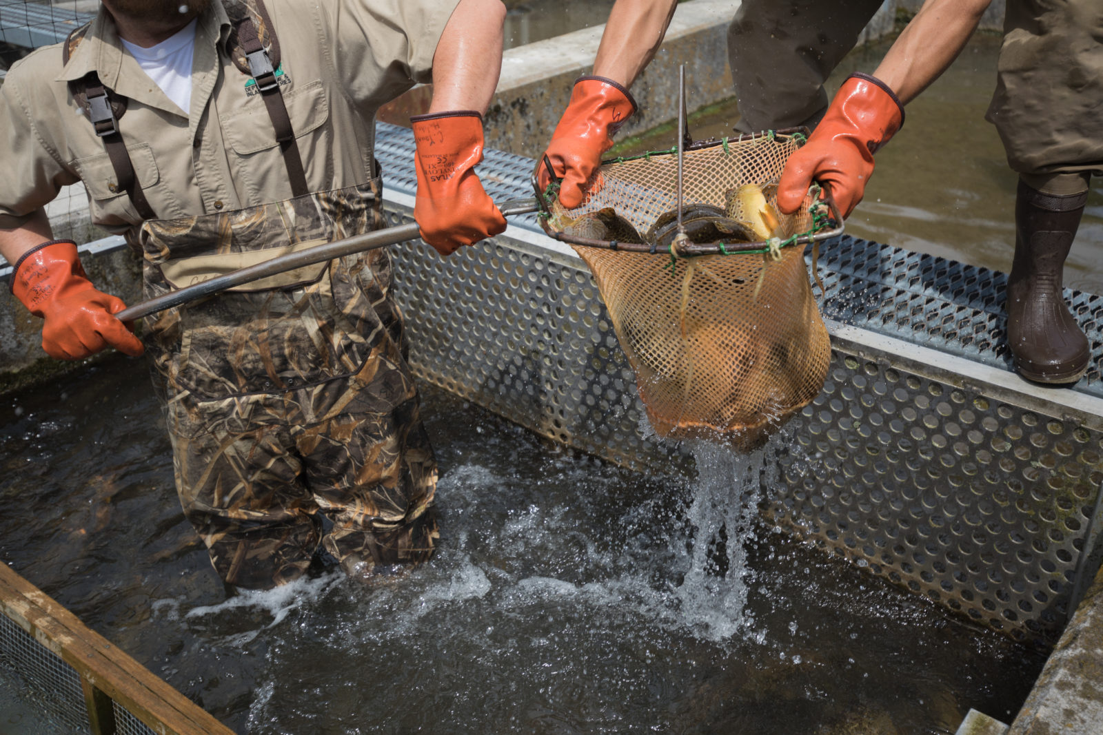 ونظرًا للطلب القوي على الحصول على أسماك السلمون المرقط والسمك البني وأقواس قزح في مياه فيرجينيا للصيادين لدينا، يتم تربية أسماك السلمون المرقط 24/7/365 في جميع مفرخات التراوت في أولد دومينيون لدعم برنامج تخزين أسماك السلمون المرقط التابع لـ DWR الذي أصبح الآن على مدار العام تقريبًا.