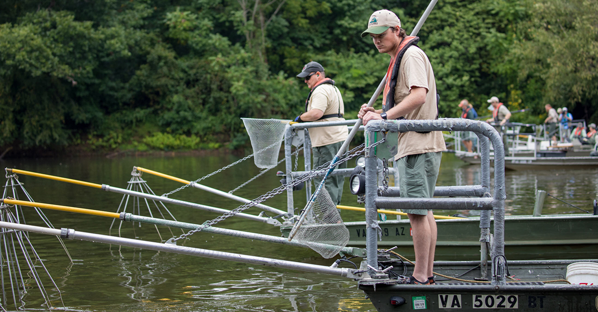وبصفتها وكالة الأسماك والحياة البرية في ولاية فرجينيا، فإن DWR مسؤولة عن إدارة موارد الأسماك والحياة البرية لدينا لصالح الجمهور. يعمل موظفو وكالتنا بجد للحفاظ على مصايد أسماك المياه العذبة وحمايتها في جميع أنحاء الكومنولث. أفضل طريقة لمراقبة صحة تجمعات الأسماك هي صيد عدد من الأسماك من منطقة واحدة في وقت واحد. على الرغم من أن علماء الأحياء المائية لدينا جميعهم صيادون ممتازون، إلا أن هناك طريقة أكثر كفاءة وأماناً وفعالية لصيد الأسماك! الصيد الكهربائي هو طريقة شائعة تستخدم في علم مصايد الأسماك، وهذا النوع من الرصد الحيوي هو حقًا أحد أكثر الطرق فعالية لمراقبة مصايدنا السمكية.