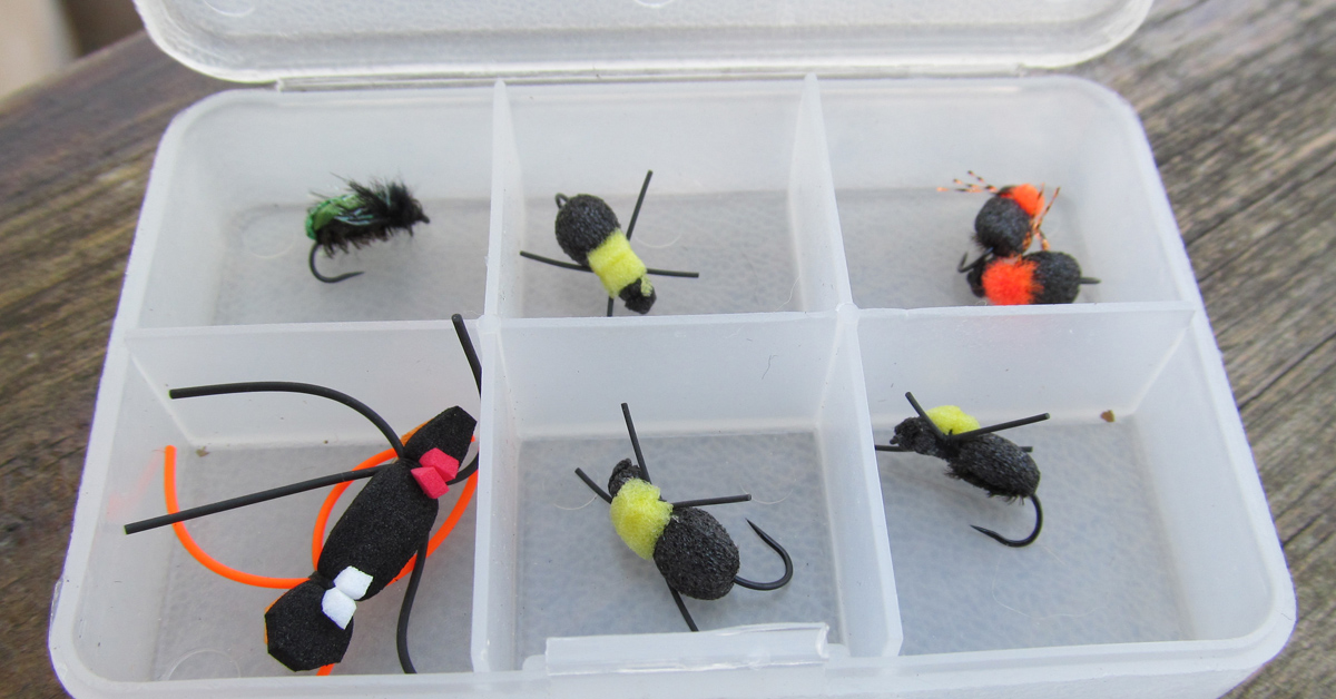 تم التعرف على أكثر من مليون نوع من الحشرات البرية، وهو ما يفوق عدد الحشرات المائية بنسبة 20 إلى 1. لا تقلق. أنت تحتاج فقط إلى بعض المقلدات المجربة من الحشرات البرية في صناديق الذباب الخاصة بك لكي تنجح في الصيد البري. ثلاثة من أفضل الأنواع التي يجب تخزينها هي الجنادب والنمل والخنافس. أضف صراصير الليل ونطاطات الأوراق وديدان البوصة إذا كنت ترغب في توسيع القائمة.
