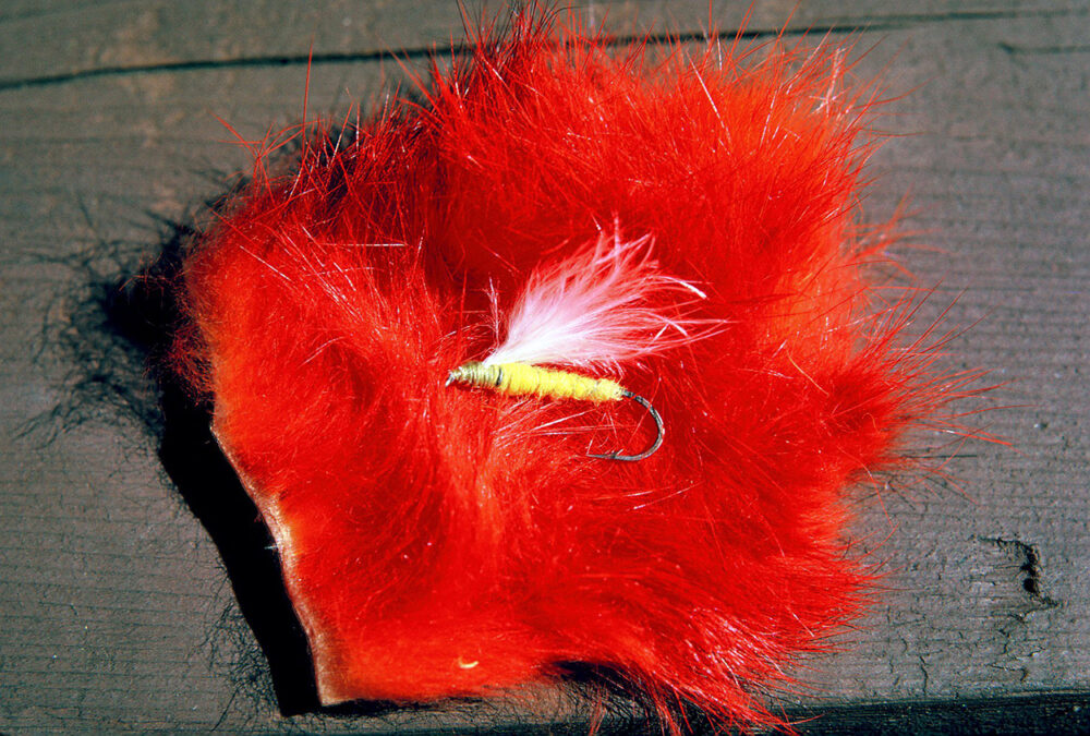في نهاية الحبل المدبب كان يوجد في نهاية القائدة المدببة طائر انسيابي صغير الحجم صممته بجسم خرطوشي ورأس أحمر قوي وجناح قصير من المارابو الأبيض. لجعلها تنزل إلى مستويات عمود الماء الأوسط حيث يحب الشادو أن يستقر، قمت بلف كمية صغيرة من الرصاص حول ساق الخطاف قبل تلبيس الذبابة. واستخدمت أيضًا خيطًا غاطسًا بطرف غاطس.