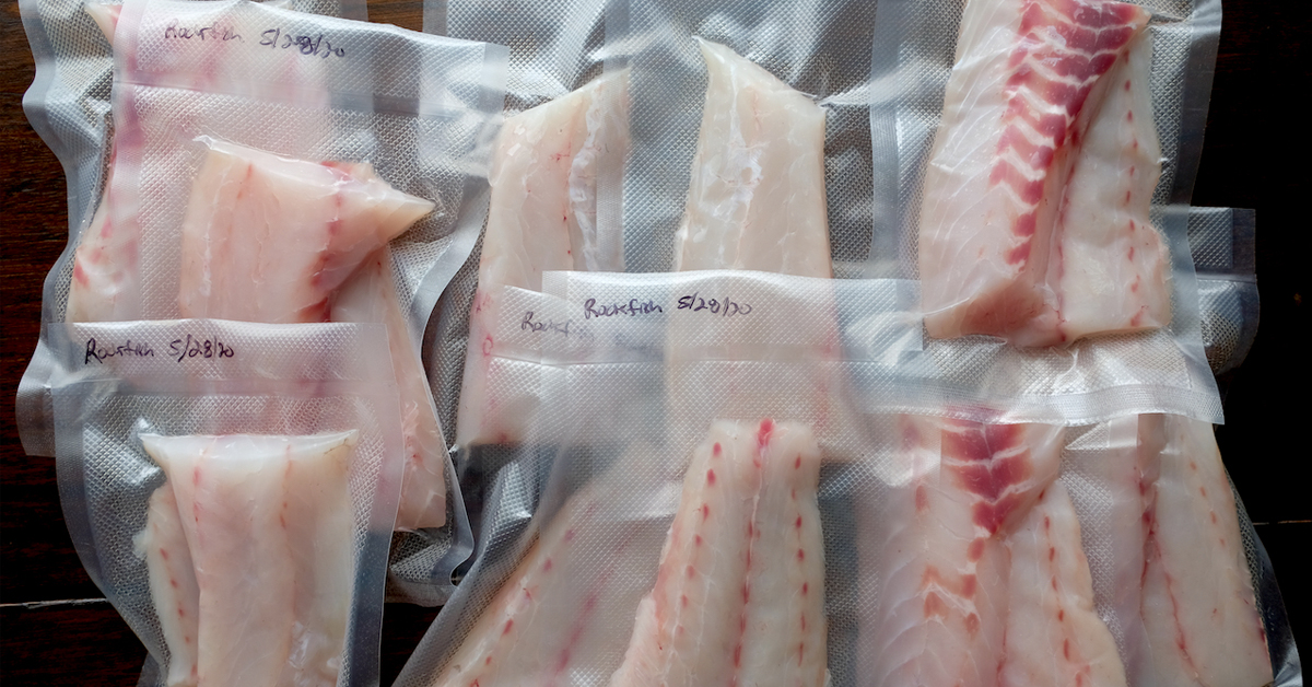 كيفية التجميد: لقد نشأت وأنا أرى السمك مجمداً في كتل من الثلج في إبريق حليب وذيولها بارزة من الأعلى. هذه الطريقة - أي إحاطة السمك بالماء قبل التجميد - ليست طريقة سيئة، ولكن يمكن تحقيق نفس النتائج باستخدام جهاز تفريغ الهواء، وستوفر الكثير من المساحة. المفتاح هو تقليل كمية الأكسجين التي ستتعرض لها الأسماك. ومع وجود كمية أقل من الأكسجين، تقل أكسدة السمك وتحلله. تعمل طريقة الماء لأنها تعمل على إزاحة الأكسجين، تماماً مثل المكنسة الكهربائية.