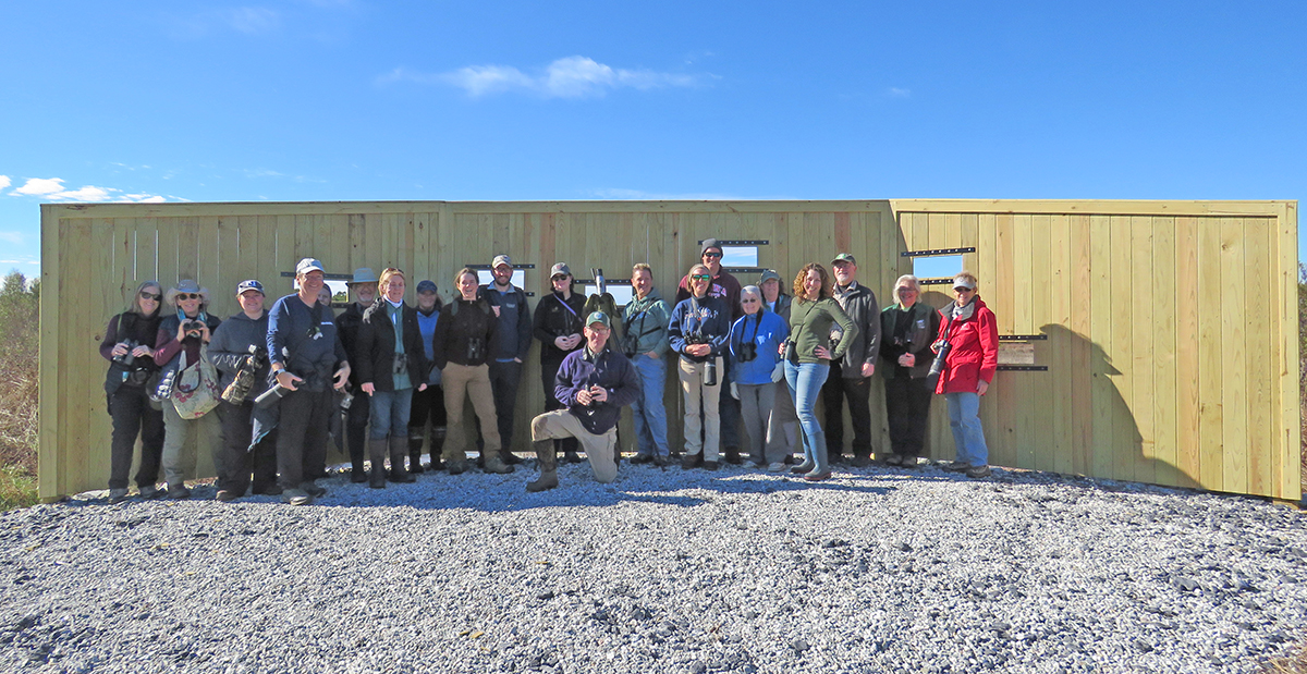 خلال جولة مشاهدة الطيور، تفقد المشاركون جدار مشاهدة الحياة البرية الجديد في متحف الأميرة آن العالمي للطيور.