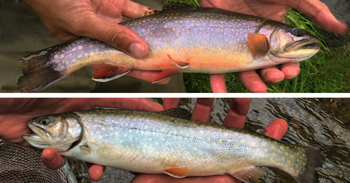 هل لاحظت نمطاً معيناً هنا؟ عبارات مثل "غالباً لا"، "بعض سمك السلمون المرقط"، "قد لا يكون"، "نادراً ما يكون". وهذا يعني أنه لا ينبغي أن يكون اللون هو المعيار الوحيد المستخدم للمساعدة في تمييز سمك السلمون المرقط المخزون عن سمك السلمون البري. والسبب؟ وكلما طالت مدة بقاء سمك السلمون المرقط المخزون في بيئة برية، كلما أصبح "ملوناً" أكثر. سيبدو سمك السلمون المرقط المفقس (5"-6") الذي يتم تخزينه في مجرى مائي جبلي أو خزان عميق بنفس لون سمك السلمون المرقط البري بعد عدة أشهر. وبالمثل، فإن قوس قزح المفقس الذي "يصمد" خلال أشهر الصيف في مجرى مائي يتغذى على الربيع سيكون أكثر ألوانًا مما كان عليه عند تخزينه لأول مرة.