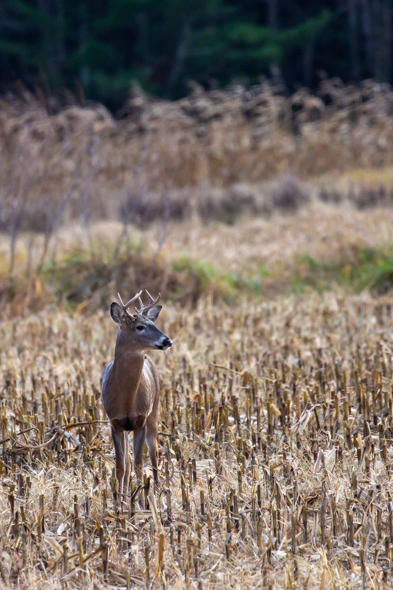 كما تحتوي شبه جزيرة هوغ آيلاند أيضاً على عدة مئات من الأفدنة من الموائل المدارة في المرتفعات. تتم إدارة العديد من الحقول المتاخمة للحواجز في المحاصيل الزراعية. تُزرع الذرة وفول الصويا بالتناوب، وبعد الحصاد، توفر الحبوب المتبقية الغذاء للطيور المائية المهاجرة. وتشمل المحاصيل الأخرى التي يمكن أن توفر قيمة للحياة البرية الدخن والقمح والمايلو. يمكن أن يكون وجود هذه الأطعمة المتوفرة بسهولة أمرًا مهمًا بشكل خاص خلال موجات البرد القارس. بعد الحصاد، تُزرع هذه الحقول بمحصول تغطية (على سبيل المثال، القمح الشتوي عادةً) الذي يمنع تآكل التربة ويوفر مورداً غذائياً إضافياً.