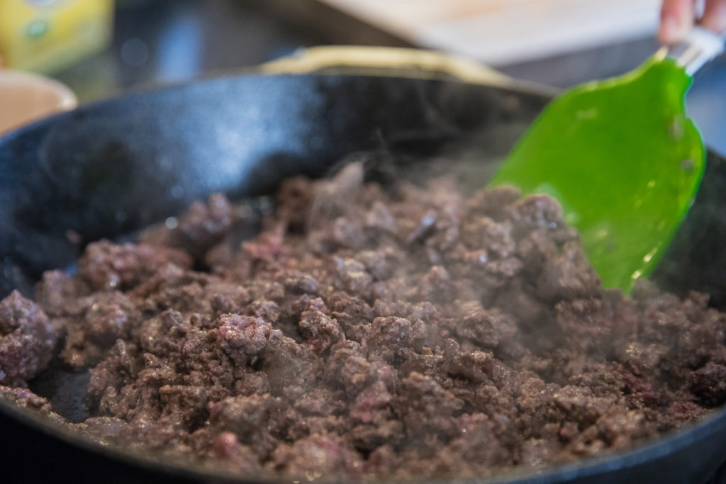 - تُطهى النقانق في مقلاة مع الزبدة حتى تحمر. يُرفع عن النار ويوضع في وعاء منفصل.
