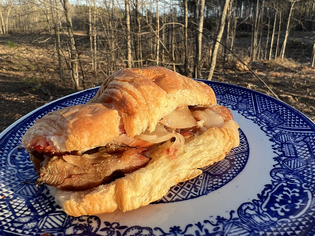 يعتبر لحم الديك الرومي البري من اللحوم الرائعة التي قد تكون أكثر قبولاً لأولئك المتخوفين من تجربة الطرائد البرية، وهذه السندويشات طريقة رائعة للاستمتاع بها. في البداية، أقوم بتدخين صدر الديك الرومي البري باستخدام وصفة هانك شو: وصفة صدر الديك الرومي المدخن الخالي من العظم - صدر الديك الرومي البري المدخن (honest-food.net) (يتطلب هذا الأمر ثلاثة أيام من المعالجة في الثلاجة للتحضير، لذا خطط مسبقاً!). يُعد الديك الرومي والتوت البري مزيجاً كلاسيكياً من المذاق الكلاسيكي، لذا يمكنك استخدام دهن التوت البري أو المربى أو المعلبات، لكنني أشجعك على استخدام التوت البري إذا كنت تتذكر شرائه من المتجر. إنه يشبه التوت البري، ولكنه أفضل قليلاً في رأيي.