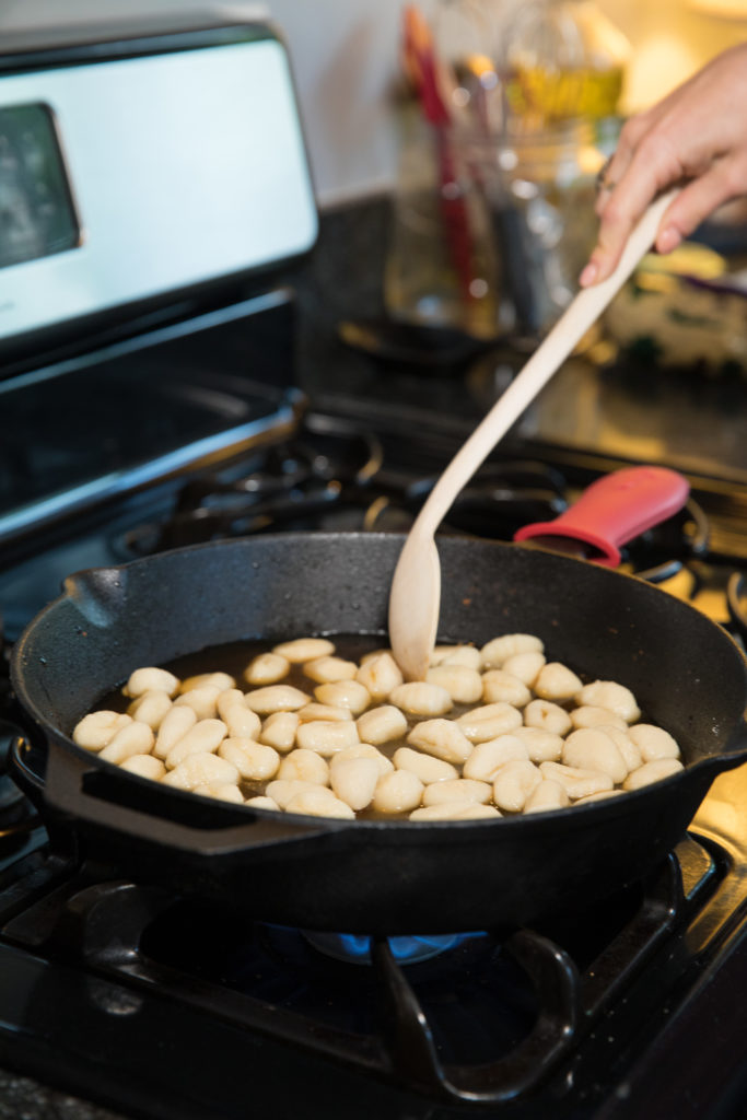 - يُضاف الثوم والطماطم والفطر والبصل. بمجرد أن يتم مزج هذه المكونات مع بعضها البعض، يُضاف النيوكي.