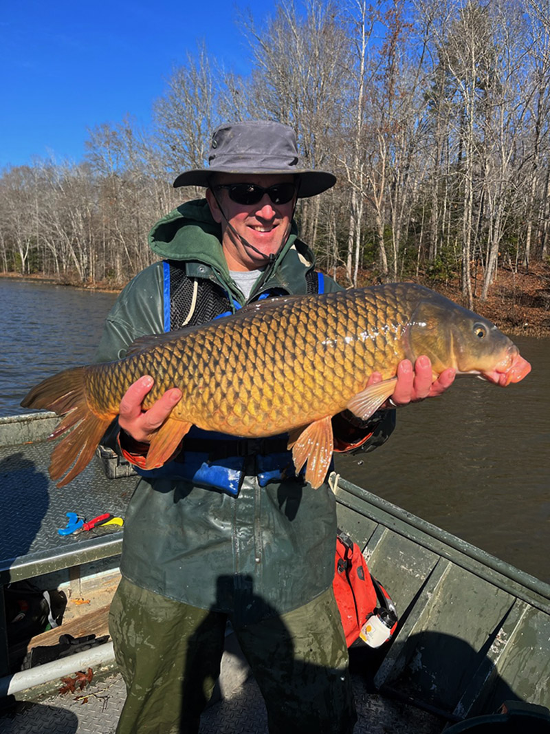 سمك الشبوط الشائع الذي يتم قياسه خلال فعالية لأخذ عينات من مصايد الأسماك. صورة من ©سكوت هيرمان
