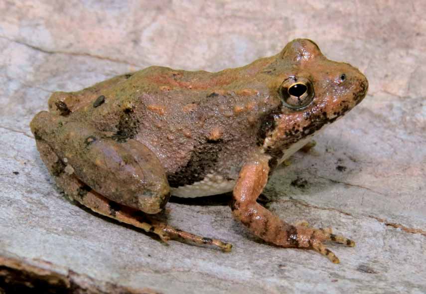 أحد أصغر الضفادع في فيرجينيا. له جلد ثؤلولي إلى حد ما مع نمط متغير للغاية من البقع والخطوط وأحياناً علامة داكنة على شكل مثلث بين العينين. يمكن أن يكون اللون الأساسي بني أو أخضر أو أسود تقريباً. يوجد شريط داكن ذو حواف خشنة على السطح المخفي للفخذ. الساق الخلفية قصيرة نسبياً عند تمديدها. إصبع القدم الأول فقط هو الذي يكون مكشوفًا بالكامل، ولا يوجد سوى 1 1/2 إلى 2 مفاصل 4إصبع القدم.