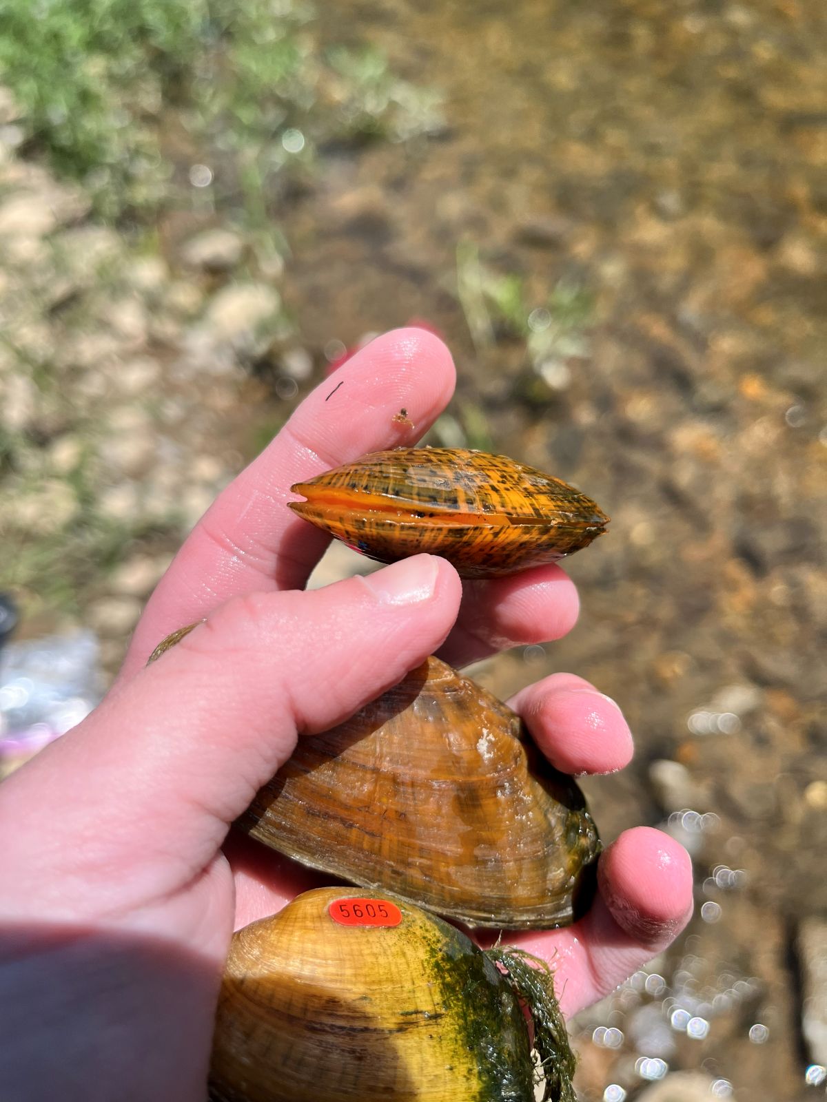 تم استعادة زوج من Elktoe خلال مسح للمراقبة. صورة التقطتها © هوارد - DWR