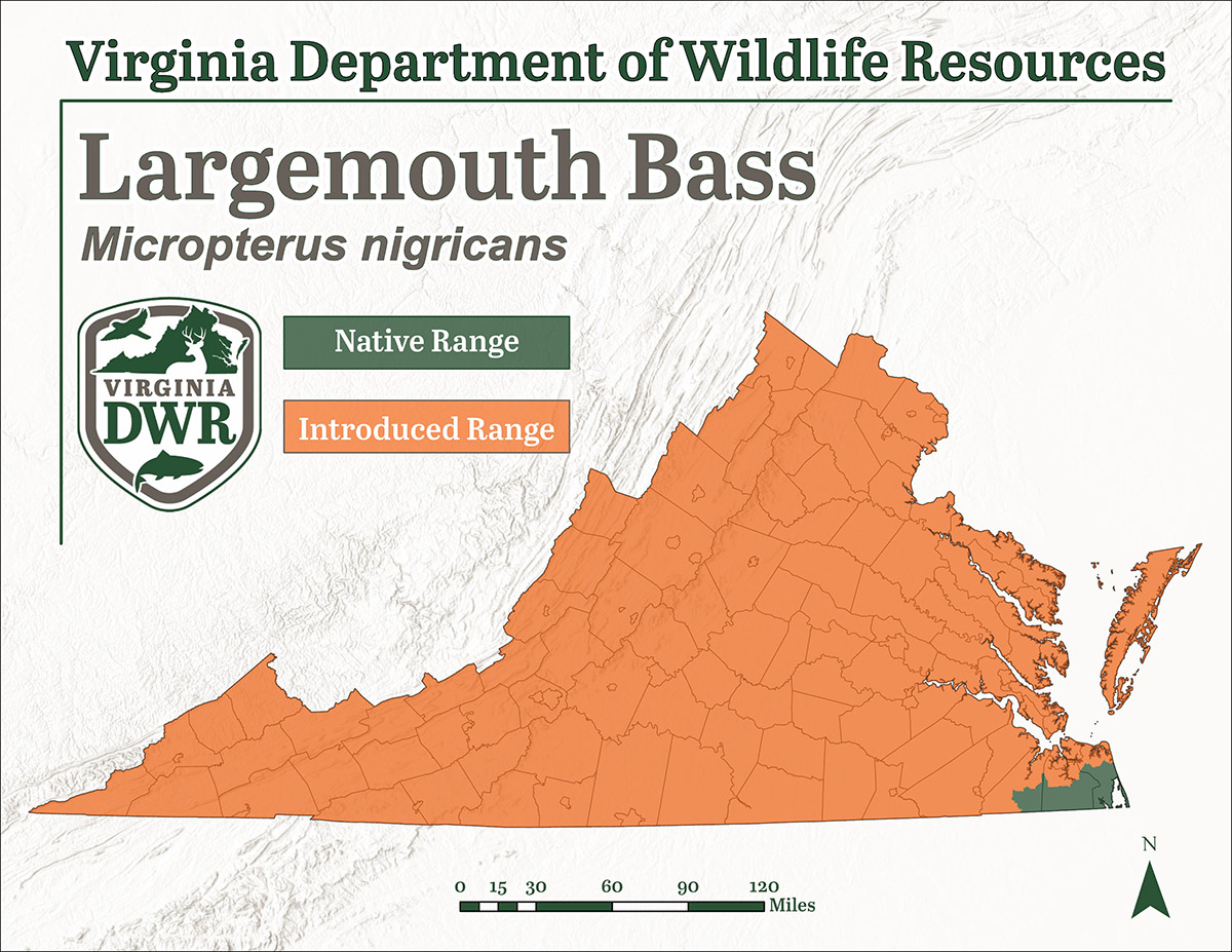 سمك القاروس الكبير هو أحد أكثر الأسماك الرياضية شعبية في الولايات المتحدة، ويوجد في جميع أنحاء ولاية فرجينيا. موطنها الأصلي جزء صغير من حوض ألبيرمارل في جنوب شرق فرجينيا.