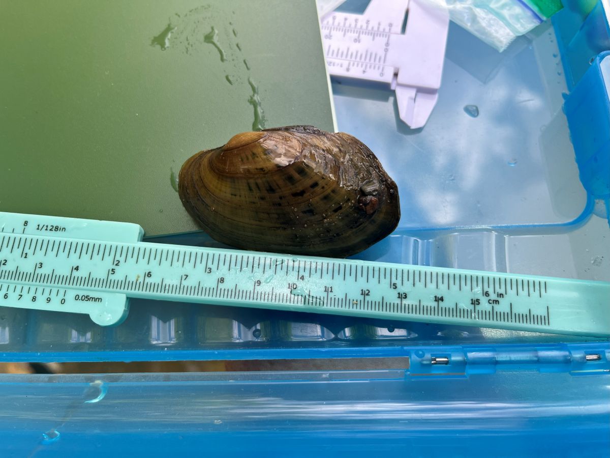 تم قياس قشرة الدراج خلال مسح Musselrama السنوي. صورة فوتوغرافية بواسطة © كايلا هوارد - DWR
