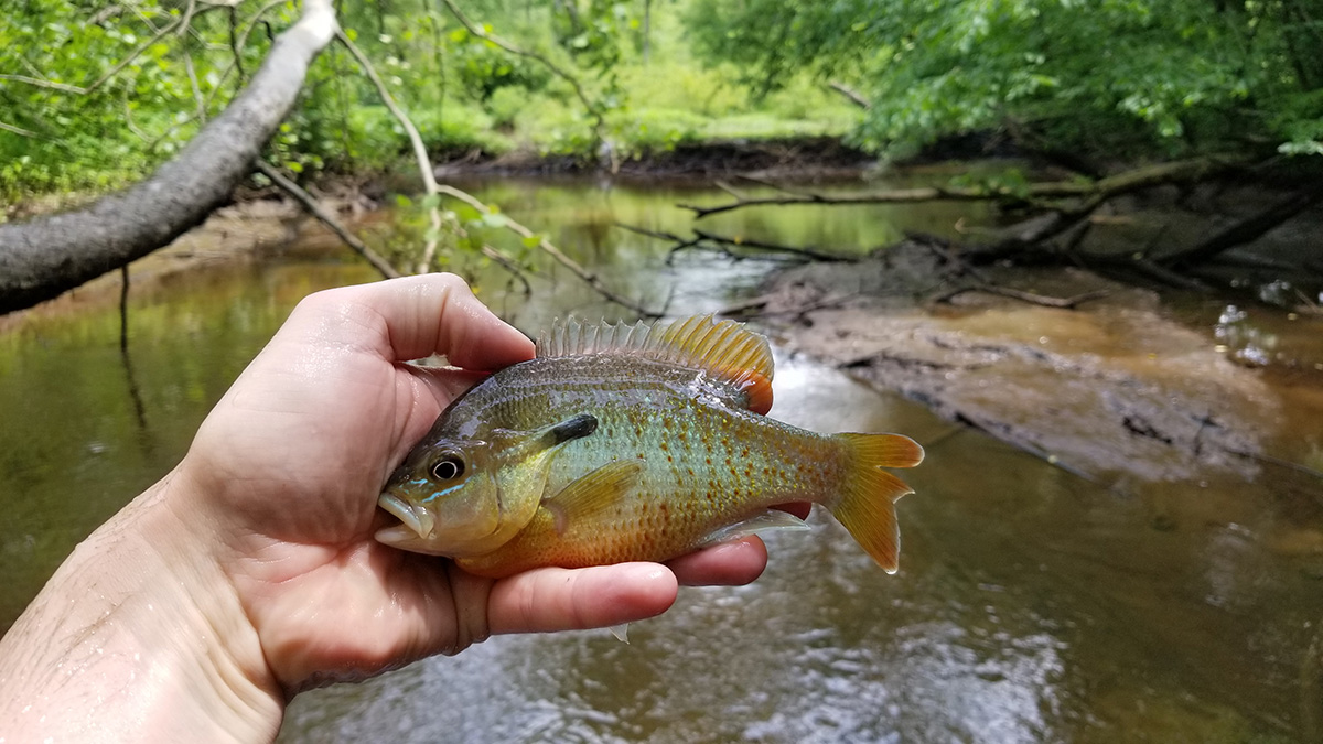 يمكن العثور على سمك الشمس الأحمر الوحشي في الجداول والخزانات في جميع أنحاء ولاية فرجينيا. تزدهر في المناطق ذات الهياكل المغمورة، أو بالقرب من الشاطئ حيث توجد ضفاف متدلية. يمكن أن تعيش في المياه المتدفقة بشكل أسرع من العديد من أنواع أسماك الشمس الأخرى.