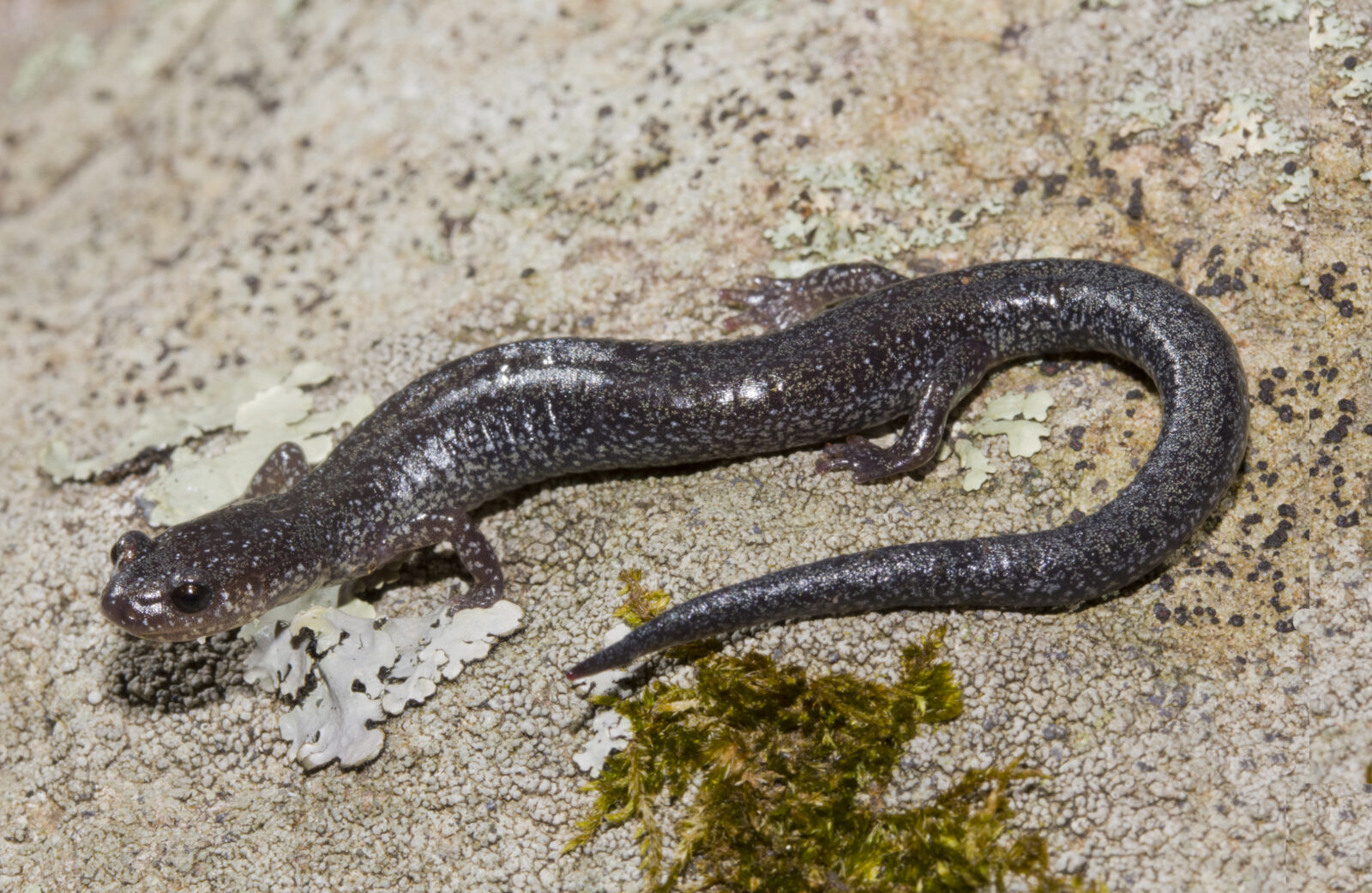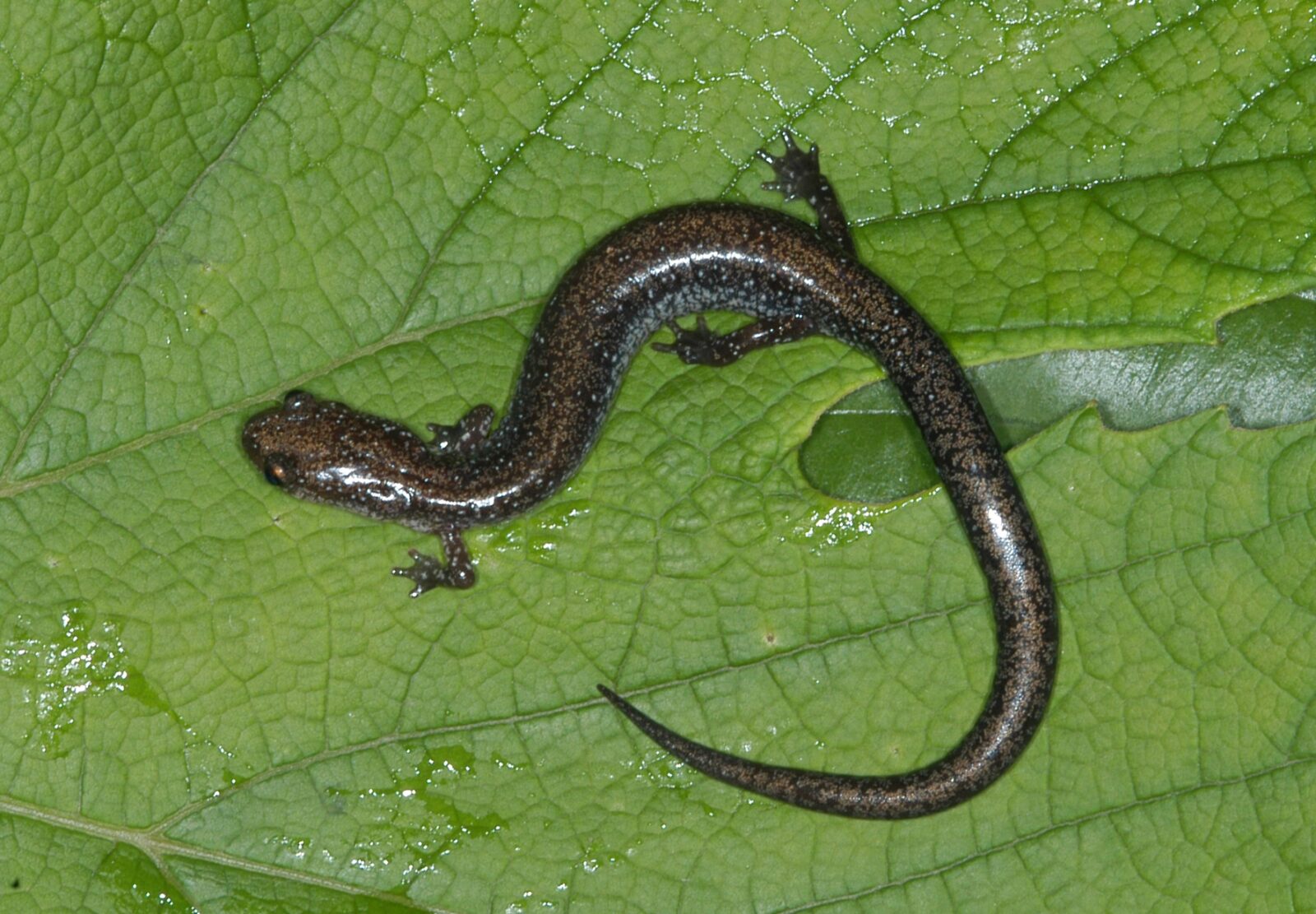هذا هو سمندل ممدود ذو أرجل قصيرة. الجسم بني إلى أسود مائل إلى البني مع العديد من البقع البيضاء الصغيرة مع ذيل يزيد طوله عن 50% من الطول الكلي. الحلق أبيض اللون والبطن أسود اللون مع نقش مرقش باللونين الأبيض والبني. يوجد شكل مخطط نادر في منطقة ريديش نوب ومنطقة جبل شيناندواه.